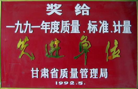 一九九一年度質(zhì)量、標(biāo)準(zhǔn)、計量先進(jìn)單位
